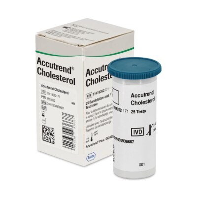 Die hochpräzisen und extrem schnell auswertbaren Accutrend Cholesterol-Testreifen dienen der Cholesterin-Bestimmung mit dem Accutrend Plus System. Nachdem ein Tropfen frisches Kapillarblut auf den Teststreifen aufgetragen wurde, ist das Ergebnis nach nur 3 Minuten ablesbar. Die Accutrend Cholesterol-Teststreifen überzeugen außerdem durch ihren günstigen Preis.