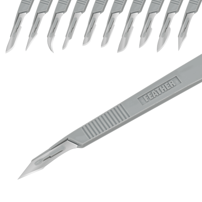 Das Einmalskalpell Feather von Pfm ist ein sehr gut ausbalanciertes Skalpell für den einmaligen Gebrauch. Der feste Sitz der Klinge am chemisch widerstandsfähigem Kunststoffgriff garantiert eine exakte Schnittführung. Die Klinge selbst ist aus rostfreiem, hitzebehandelten Edelstahl mit doppelten Präzisionsschliff.