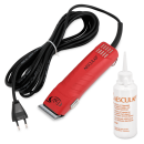 Die FAV 5 Kleintierschermaschine hat eine griffige, ergonomische Form, die auch bei langem Arbeiten angenehm in der Hand liegt. Durch den praktischen Schalter im vorderen Bereich lässt sich die Schermaschine auch mit nur einer Hand bequem bedienen.