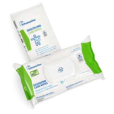 Die alkohol- und parfümfreien Desoderm Care Wipes Reinigungstücher von Dr. Schumacher eignen sich für eine sanfte und pflegende Reinigung bei empfindlicher Haut. Mit ihrem weichen Vlies sorgen sie für ein angenehmes Gefühl auf der Haut, ohne sie zu reizen. Es wird keine Zugabe von Wasser benötigt, was sie ideal für unterwegs macht.