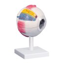 Das Augen-Modell in 6-facher Größe verfügt über eine herausnehmbare Cornea, Iris, Linse und einen Glaskörper. Des Weiteren werden die Muskelansätze an der Sklera und ein Teil der Choroidea verständlich dargestellt. Das Modell ist auf einem Stativ stabil befestigt und wiegt nur ca. 0,6 kg.