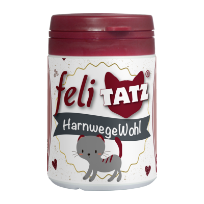 feliTATZ HarnwegeWohl von cdVet mit 12,5 g Inhalt ist ein Pulver, das sich zur therapiebegleitenden Fütterung von Katzen, die zu Harnwegsproblemen neigen, eignet. Die enthaltenen Kräuter und Mineralstoffe können für einen verstärkten Harndrang und eine vermehrte Flüssigkeitsaufnahme sorgen.